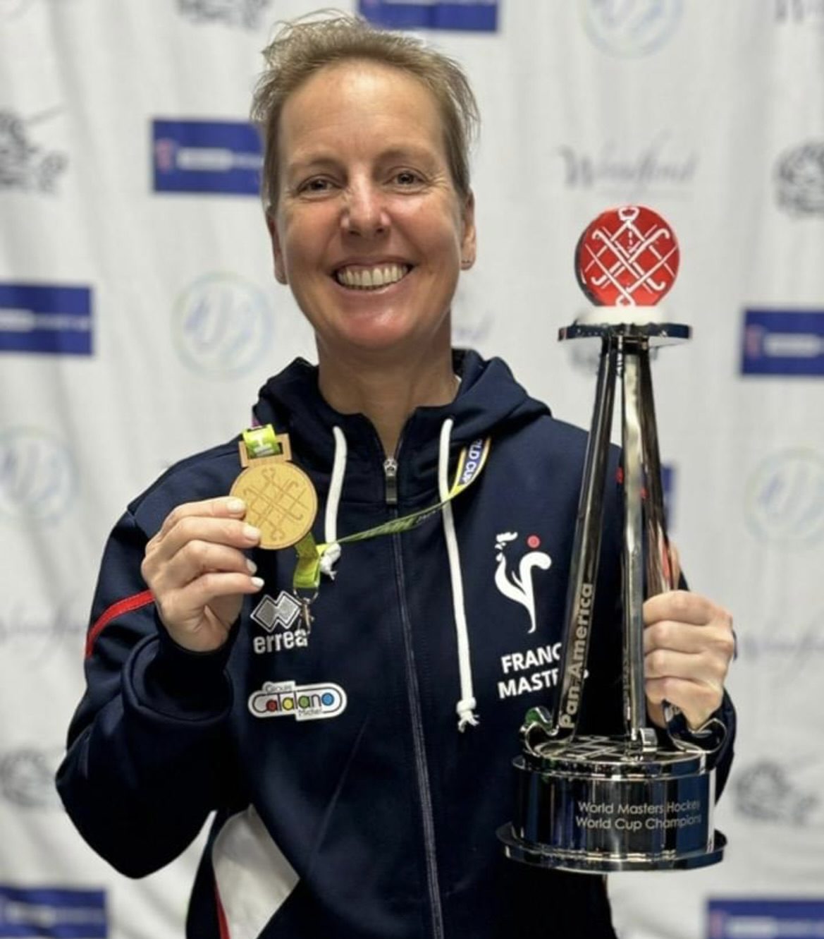 Je suis ravie de partager avec vous une nouvelle extraordinaire : j’ai eu la chance d’être sélectionnée pour participer au championnat du monde de hockey indoor à Nottingham du 27 mars au 2 avril dans la catégorie des femmes de plus de 40 ans (masters)! C’est la réussite de toute une équipe et aussi une inspiration pour chacune et chacun d’entre nous qui démontre que le sport peut apporter des satisfactions à tout âge. Ce fut une compétition intense avec 7 matches, tous remportés de haute lutte ! Nous avons gagné la finale contre les allemandes quintuples championnes du monde et ainsi permis à la fédération française de hockey d’obtenir son premier titre mondial.