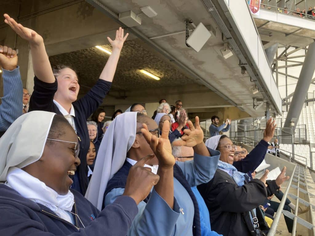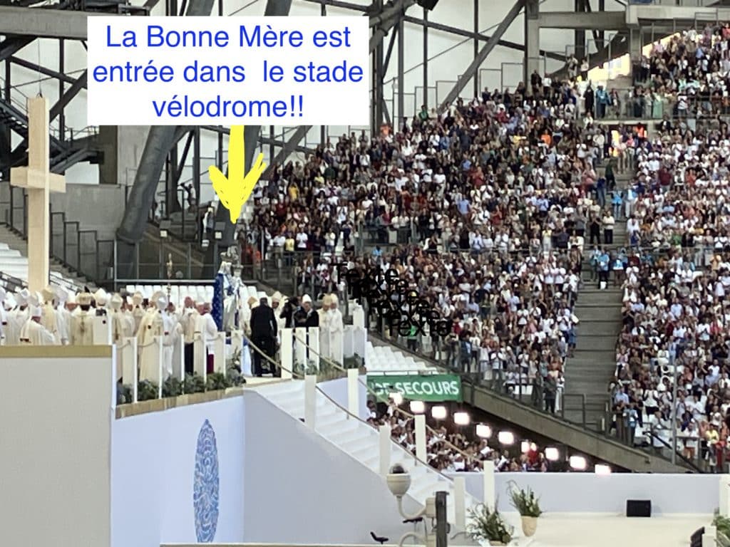 Le point d’orgue arrive… Nous sommes au stade vélodrome… L’attente passe vite avec les témoignages de musulmans devenus chrétiens sans renoncer à leur culture, le groupe Glorious, les humoristes …