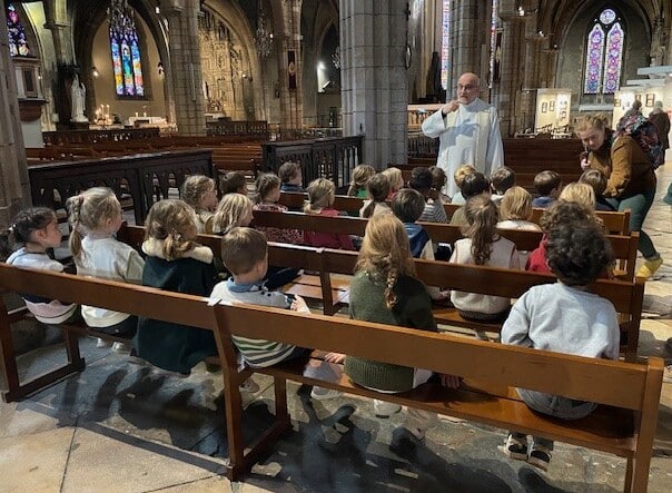 A l’occasion de l’année jubilaire (il est encore temps !), toutes les classes de la Grande Section au CM2 se sont rendues à l’église St Bonaventure, l’un des trois sanctuaires jubilaires du diocèse de Lyon.