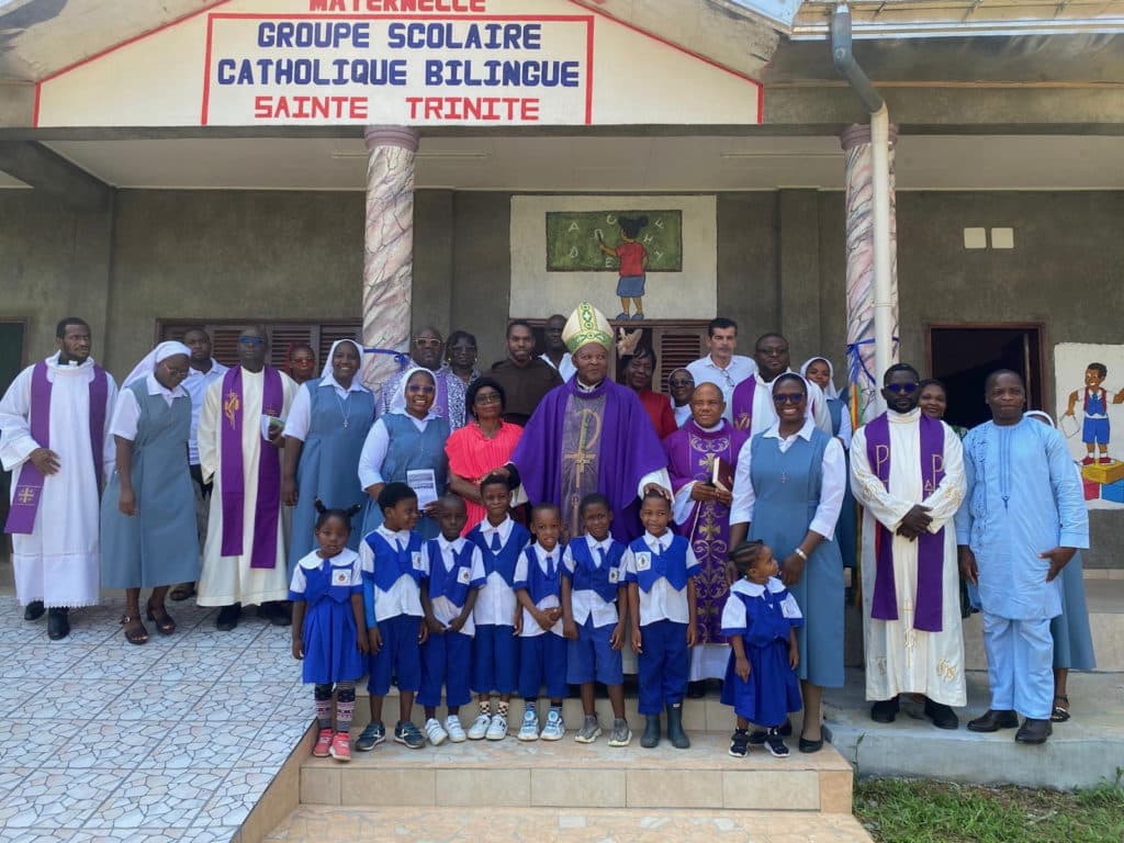 Le chef d’établissement d’Alcazar (Espagne) et une collègue sont partis quelques jours en Afrique pour soutenir les œuvres de nos soeurs. Ils ont pu participer à l’inauguration du préscolaire bilingue Ste Trinité à Kribi (Cameroun). Bravo pour la solidarité !