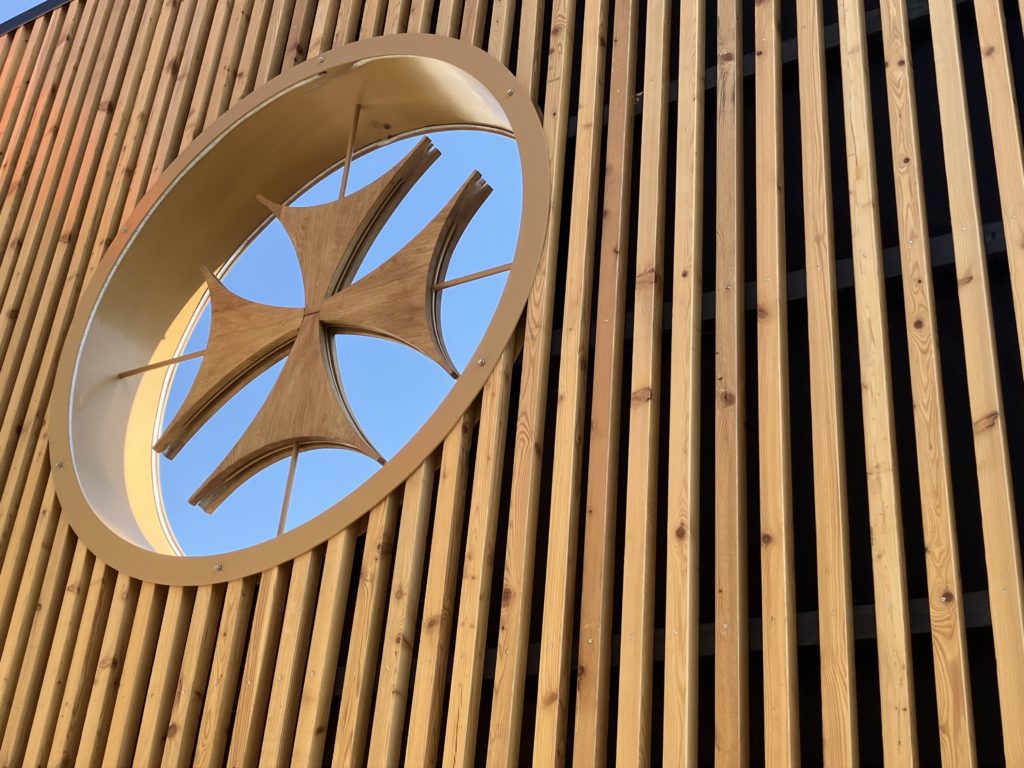 - Afin de sécuriser un escalier, la façade côté primaire a été refaite. Belle occasion pour mettre la croix trinitaire en évidence. Et elle est lumineuse la nuit !