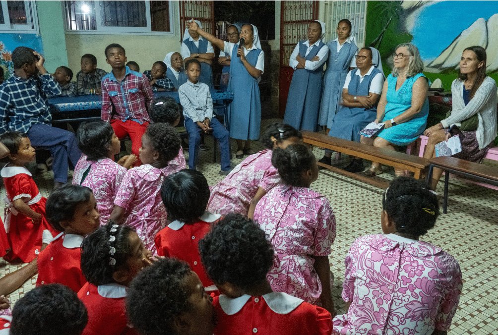 C’est l’accueil qui nous a été réservé qui nous a bouleversé. Mais pas seulement ! Le travail de nos soeurs sur le terrain nous a littéralement sidérés. Elles sont partout. Elles enseignent, soignent, conseillent, visitent… Nous avons été très impressionnés. Avec nos maris, nous nous sommes demandés ce qui se passerait s’il n’y avait pas de soeurs. Que deviendraient ces enfants? C’est pourquoi nous sommes plus motivés que jamais pour les aider dans leur mission.