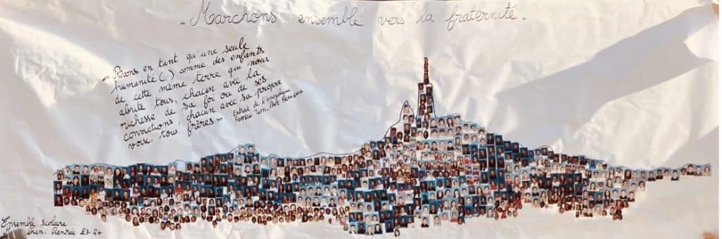« Nous marchons ensemble vers la fraternité » lorsque nos équipes du collège et de l’école célèbrent notre nouveau thème trinitaire. Notre célébration d’octobre 2023 a été l’occasion pour nous de relire le très beau texte de Christian de CHERGE, qui a été magnifiquement illustré par la présence de l’Imam Omar et du Père Vincent.
